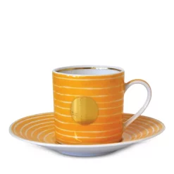 - Dimensions: cup 2.2″ diameter x 2.5″H; saucer 4.9″ diameter