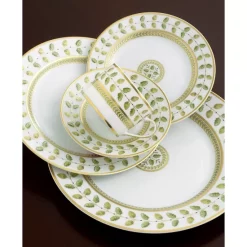 Inspired by designs from the Empire period, Constance is composed of a fresh composition that renders it a timeless classic. Elegantly outlined in gold, acorns and oak leaves, symbolizing strength and longevity, accent its delicate watercolor palette of greens.