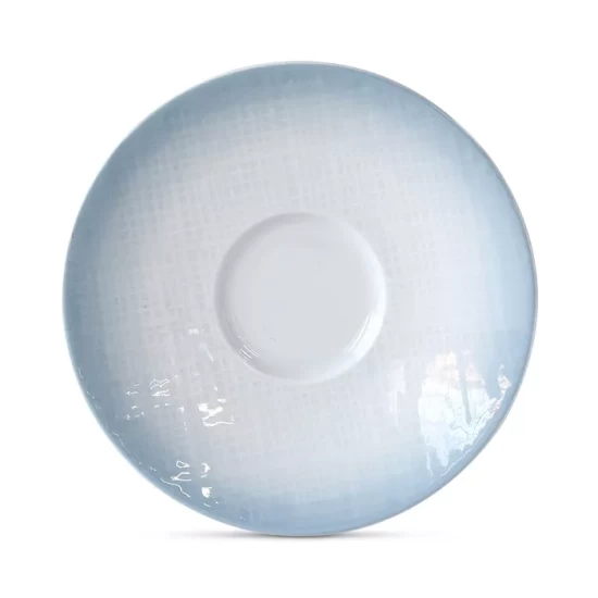 - The design features a shade of azure emerging from fabric-textured, slightly opalescent white porcelain, reminiscent of the seaside or the softness of a blue sky.