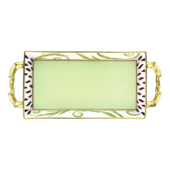 Frivole combines daring originality with soft feminity to create a sophisticated design for the table. Sprawling leaf-work designs add exuberant elegance to this whimsical pattern. Coordinating colors of amethyst and sage with gold trim allow versatility when entertaining formally or casually.
