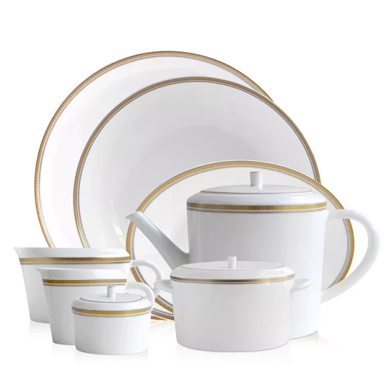 A lustrous gold and platinum trim brings eye-catching appeal to this serveware collection from Bernardaud.