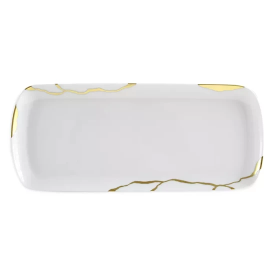 - Bernardaud’s Kintsugi rectangular cake platter combines lacquer with 24K gold for an opulent design that is both artistic and awe-inspiring.