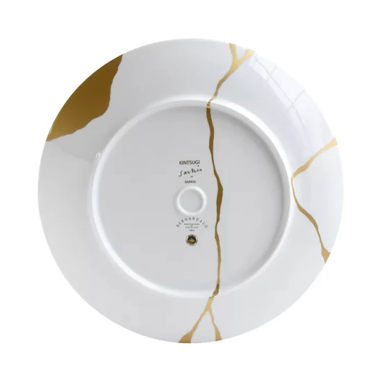 - 24K gold spackled design inspired by 16th century Japanese Kintsugi art