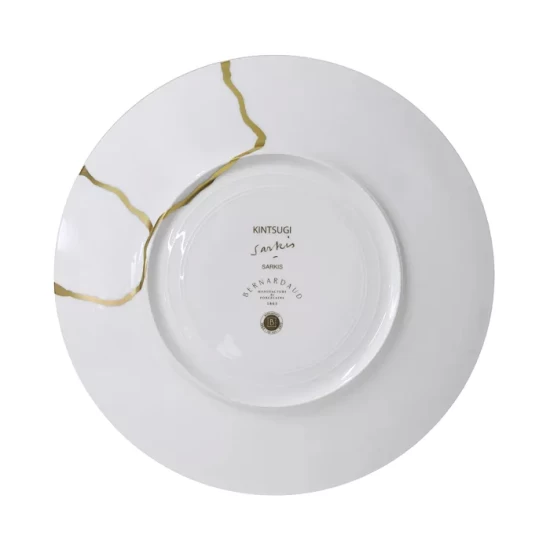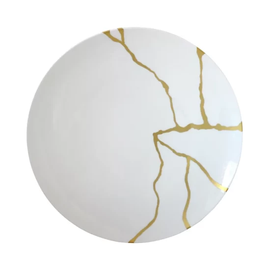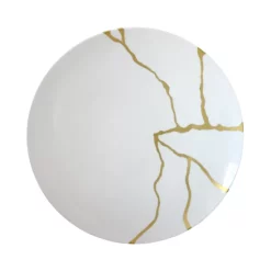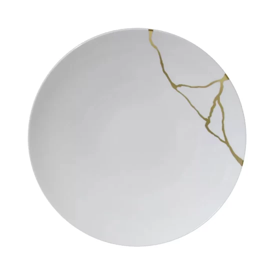 - 24K gold spackled design inspired by 16th century Japanese Kintsugi art