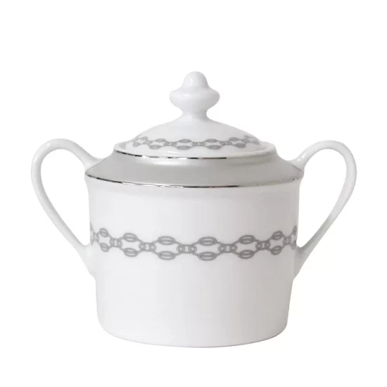 Delicate chain motifs, iridescent textures and gleaming platinum rims finish Bernardaud porcelain with luxe flourish.