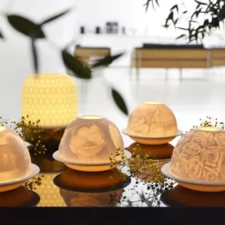 Light up your decor with a luminous votive from Bernardaud, intricately adorned with an elegant magnolia pattern on colorful porcelain.