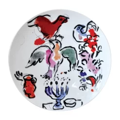 In 1959, renowned artist Marc Chagall collaborated with master glassmakers to create twelve stunning stained-glass windows for the Hadassah-Hebrew University Medical Center in Jerusalem. In partnership with the artist, Bernardaud interprets the original designsβrepresenting the twelve tribes of Israelβin rich color on fine porcelain dishes.