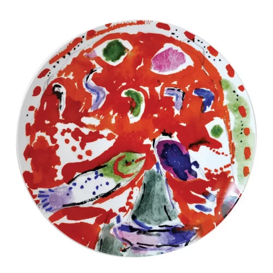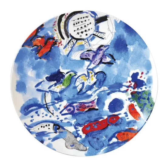 In 1959, renowned artist Marc Chagall collaborated with master glassmakers to create twelve stunning stained-glass windows for the Hadassah-Hebrew University Medical Center in Jerusalem. In partnership with the artist, Bernardaud interprets the original designs—representing the twelve tribes of Israel—in rich color on fine porcelain dishes.