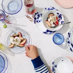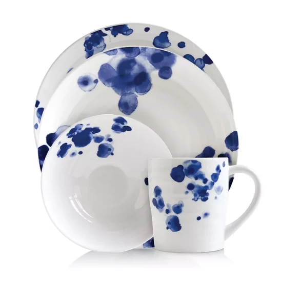 Featuring a modern splatter motif, this dinnerware brings a stylish pop of color to the table.