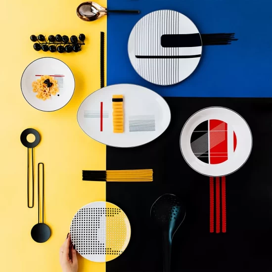 - The Oscar Tea Saucer’s bold graphic design was inspired by the colors and vitality of the works of Brazilian architect Oscar Niemeyer.