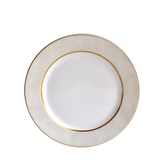 An intricately embossed finish evokes the captivating look and texture of snake skin in this eye-catching piece from Bernardaud. A lustrous 24k gold trim finishes the display, lending modern luxury to the table.