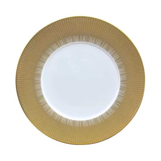 Beautifully crafted from Limoges porcelain and featuring a starburst-inspired motif, this eye-catching piece from Bernardaud is highlighted by 24k gold detail. Pair with crisp white linens for an elegant affair or pops of vibrant color for a playfully modern display.