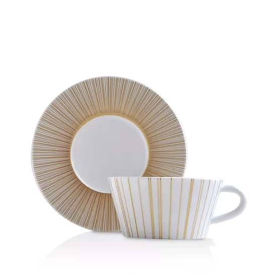Beautifully crafted from Limoges porcelain and featuring a starburst-inspired motif, this eye-catching piece from Bernardaud is highlighted by 24k gold detail. Pair with crisp white linens for an elegant affair or pops of vibrant color for a playfully modern display.