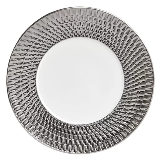 - Engraved on the rim of the plates and on the outside of the various pieces of the collection, it is the light that reveals the alternation of matt and shining rendering