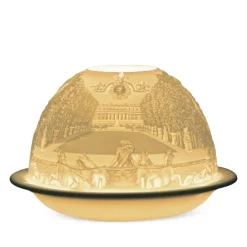 Manufactured in the town of Limoges by the Bernardaud family, each votive is lovingly crafted of fine French porcelain. Using the Ancient Greek technique of Lithophany, a tealight candle placed beneath the dome beautifully illuminates a the great palace of Versailles.